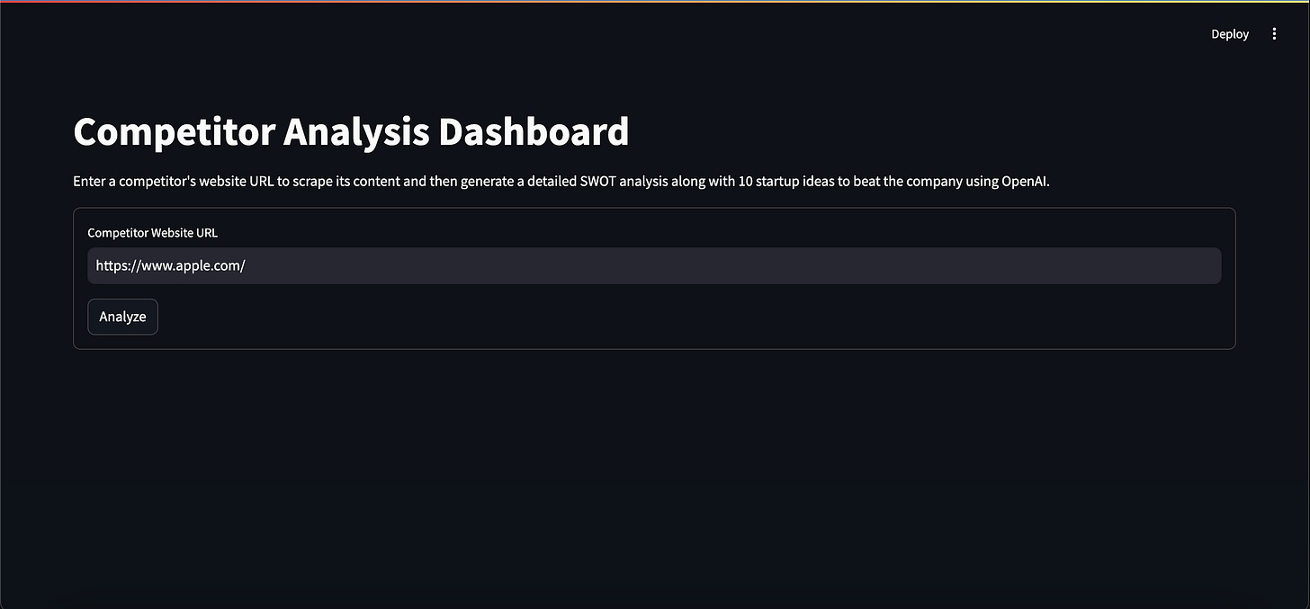 I have an issue (if you couldn’t tell). I love building things. That does mean I can get distracted in the short term and lose focus on various projects. So, to make myself feel better, I’m going to pass on this issue to you as well. Today, we’re building a Streamlit app to analyze a competitor’s website, produce a SWOT analysis, and then give you some startup ideas to build!